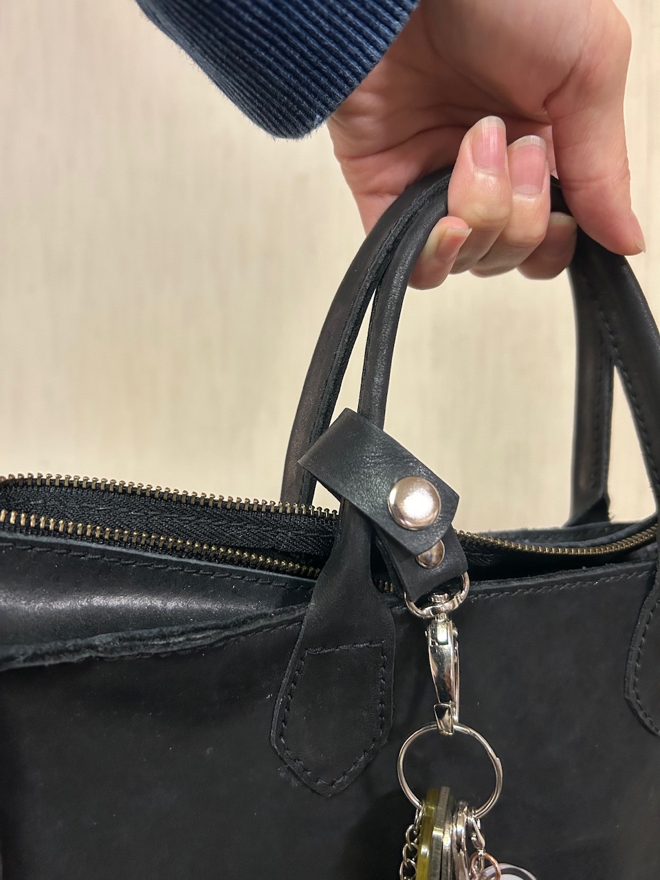 財布や鍵、手袋等をこのマルチホルダーに付けてかばんの中や取手に通してお使いいただくことで、