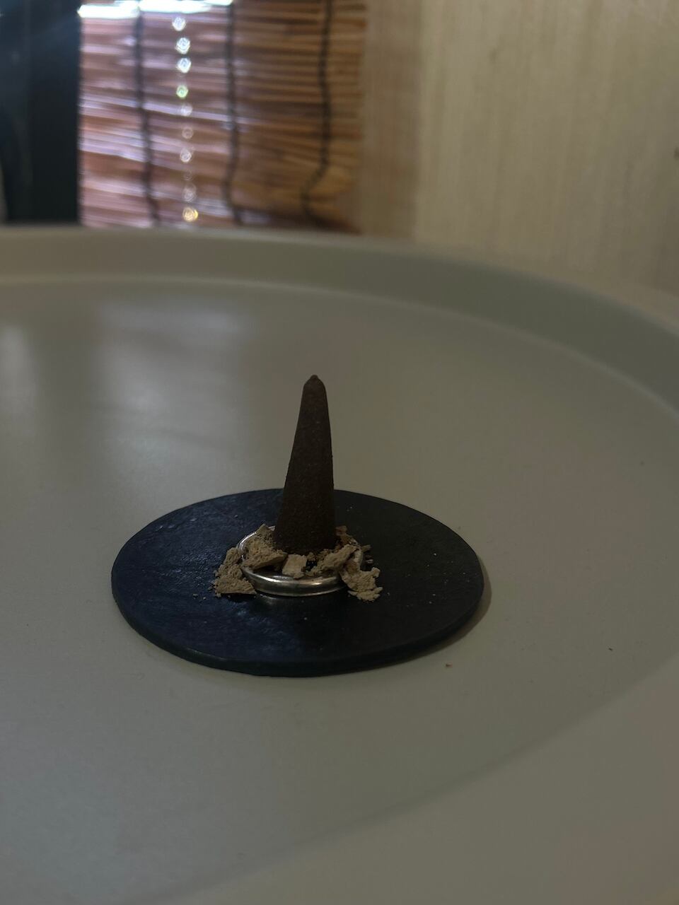 ※コーン型のお香を置く際には必ず土台も合わせてご使用ください。革が焦げてしまう場合があります。