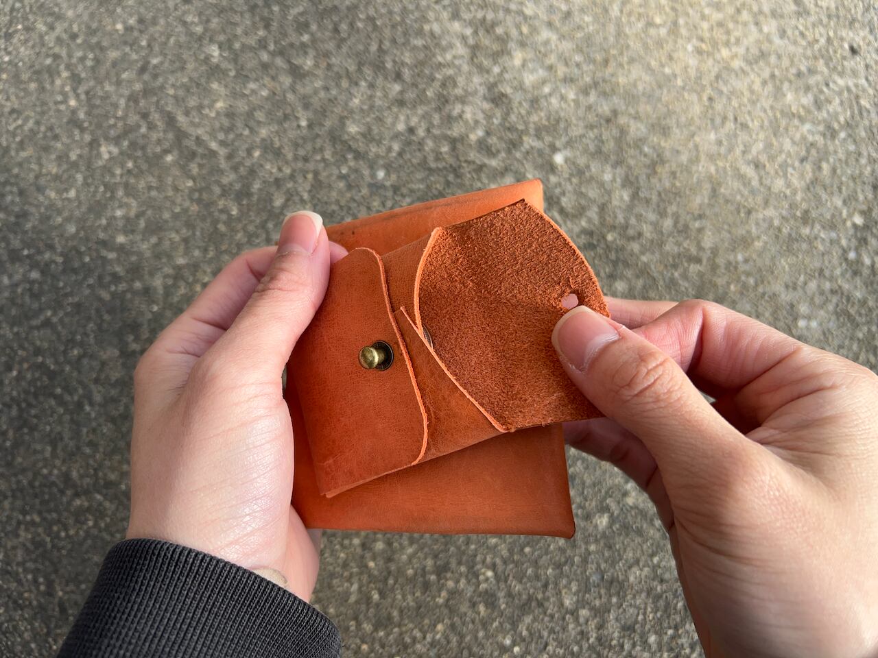 二つのお財布をマグネットホックで取り外せるようにしたことで、