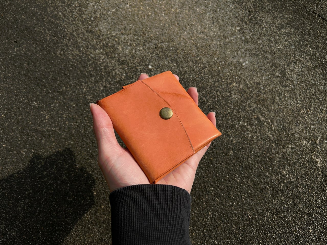 柔らかい革を使用し、糸を一切使わずに折りたたむような設計で、