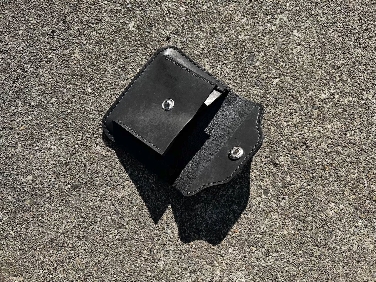 スナップボタンを開くだけで全ての出し入れができるので、コンパクトながらお会計がスムーズにできます。