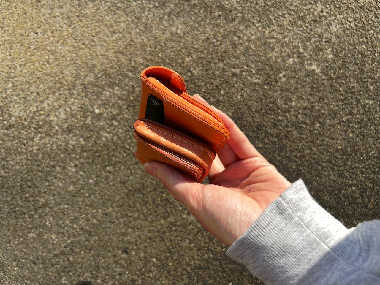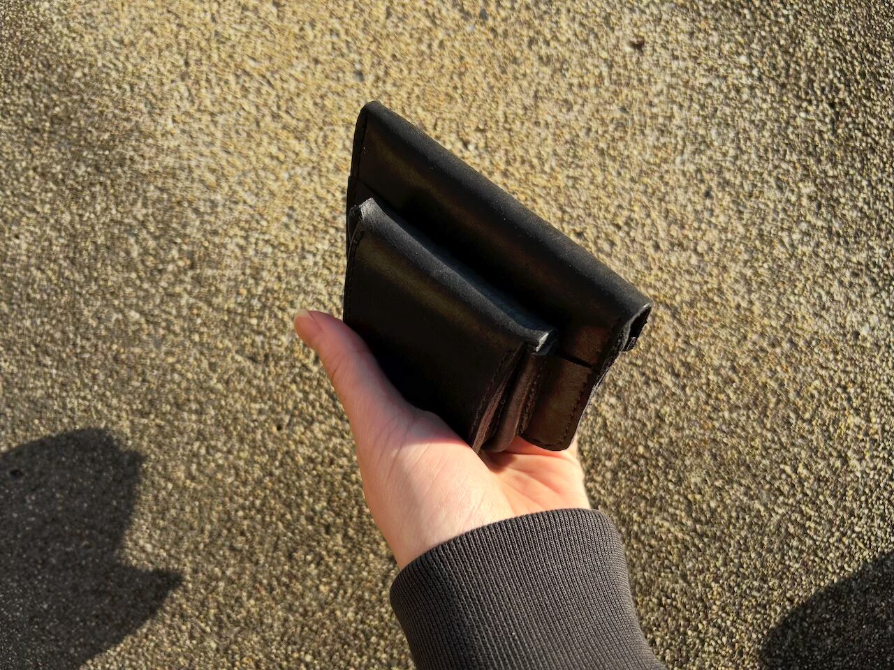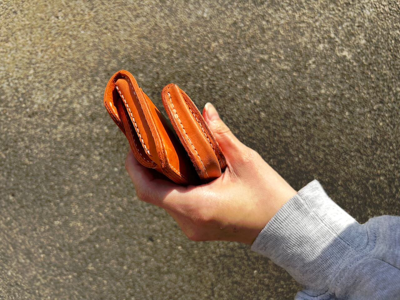 コンパクト財布だと見えにくく、取りづらくなってしまう小銭入れを完全に外して使えるため、お会計で手間取ってしまう小銭をジャラッと入れられて使いやすくなりました。